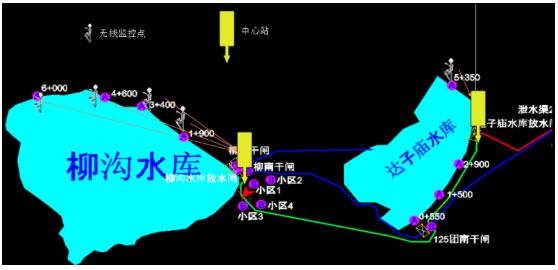 柳溝水庫(kù)周邊有40個(gè)無(wú)線監(jiān)控點(diǎn),而達(dá)子廟的一個(gè)監(jiān)控點(diǎn)距離柳溝水庫(kù)較遠(yuǎn),所以在達(dá)子廟水庫(kù)增加一個(gè)中心站來(lái)保證達(dá)子廟水庫(kù)的監(jiān)控點(diǎn)能正常將視頻數(shù)據(jù)傳回。