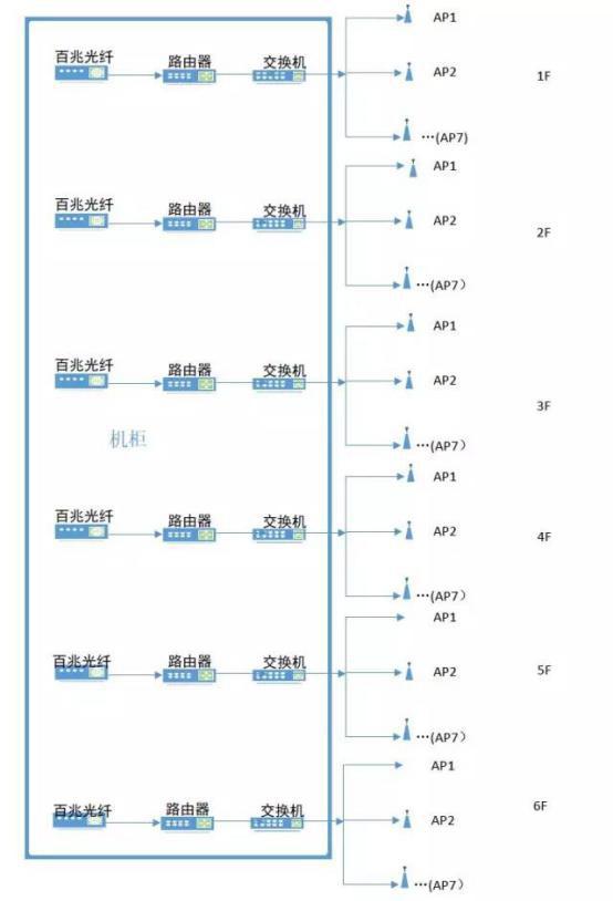 每個樓層一條百兆光纖,為本樓層兩百多學(xué)生提供高速寬帶接入。