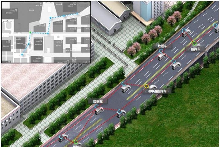 對于車輛通信而言,無論是靜中通還是動中通都已發(fā)展成熟,但對于車輛間的動態(tài)組網(wǎng), 一直缺少一種恰如其分的性價比高的手段。中訊慧通科技的無線MESH無線自組網(wǎng)設備恰好能解決此需求。下圖是中訊慧通科技參與的某軍車隊組網(wǎng)的項目案例。 該車隊是由十幾輛車構(gòu)成,車與車之間保持語音對講、群呼等通信;同時其中三臺指揮調(diào)度車,可對其他車輛的車內(nèi)、車頭以及路況視頻逆行監(jiān)控。 此外,其中一臺指揮車裝備有動中通,通過調(diào)動車隊任意視頻的方式,可借助衛(wèi)星傳回監(jiān)控中心。
